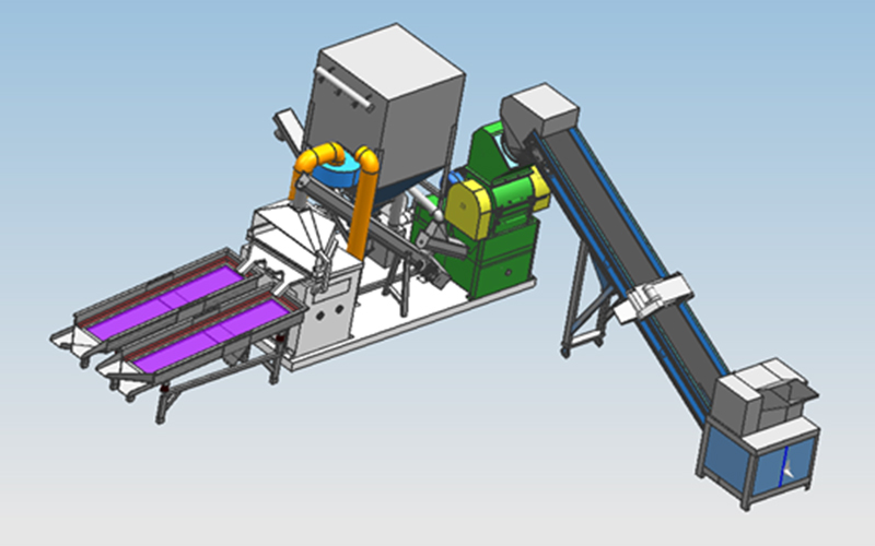 The JZ—DX500 production line is mainly used to process oil-free wires such as communication wires, automobile wires, computer wires, household wires, etc. The materials are regenerated into recyclable metal particles and plastic particles respectively through a secondary crushing and tertiary separation process.
